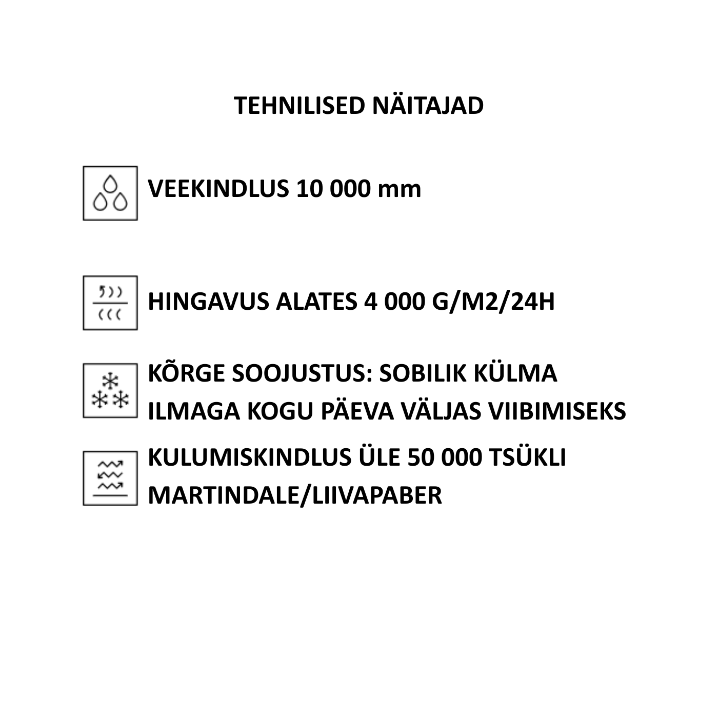– Hingavus 4 000 g/m²/24 h